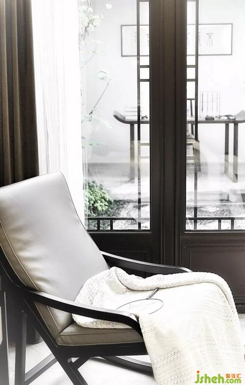 長輩房連接室外庭院,空間通透明亮,飾以端莊穩(wěn)健的大地色,詮釋出悠然閑適,平靜的生活態(tài)度?!奥淙胀ピ褐?,春風(fēng)啜茗時?!痹陟o逸雅致的庭院中平和身心,品位生活中的閑適情趣。