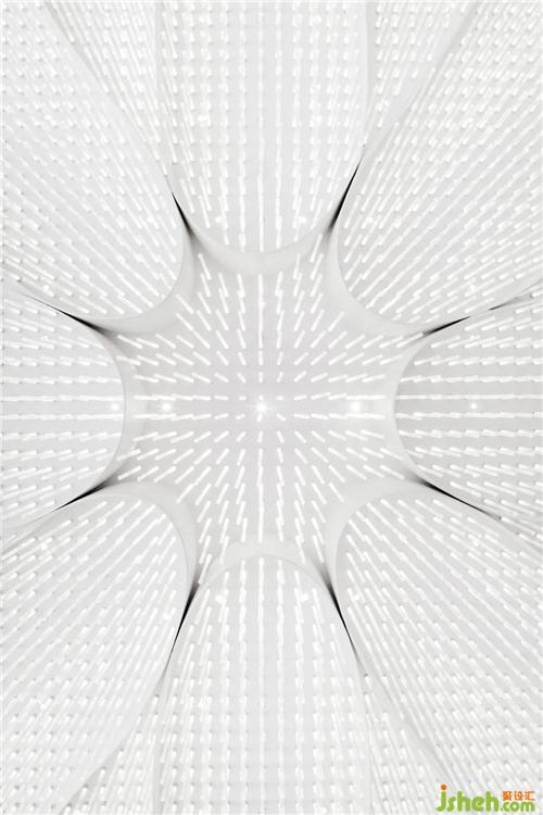 天花開出一朵懸于頭頂、尺度恢弘的「花」,以強大的張力誘惑人抬頭仰望,遙想生活中的美好。設(shè)計對「花」的引用并非具象,而是希望藉由形態(tài)的相關(guān)誘發(fā)心境的回響。佇立其下仿若置身花中,夢幻與現(xiàn)實相混、人與萬物一體。北京會所設(shè)計描摹「花形」的無數(shù)水晶玻璃棒正是連接記憶的無數(shù)纖維,點亮整個會所空間的想象。