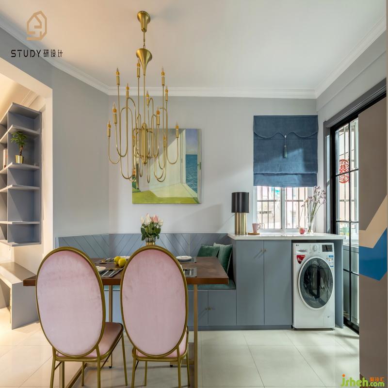 用餐區(qū)的細(xì)節(jié)設(shè)計令人耳目一新。室內(nèi)設(shè)計師使用金色燈飾讓給家中的古典氛圍帶去了不少現(xiàn)當(dāng)代的潮流品位。