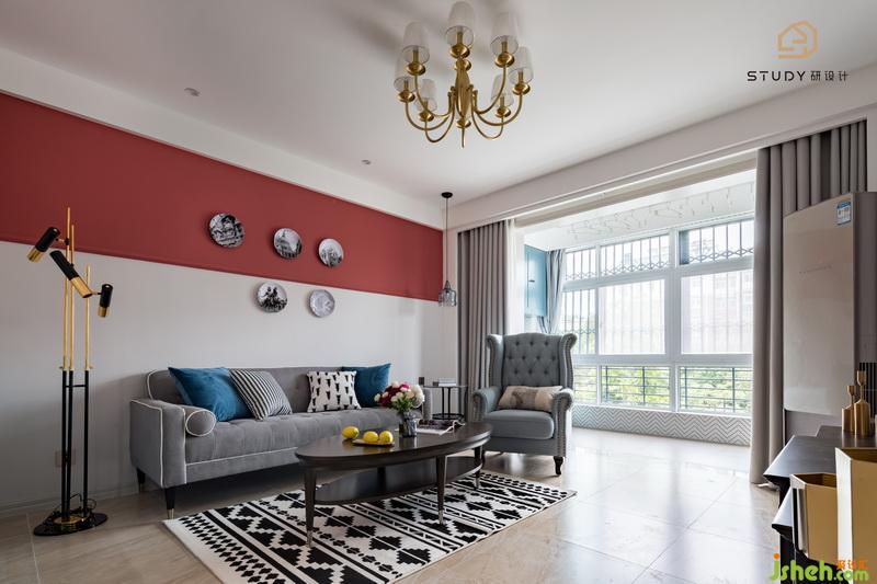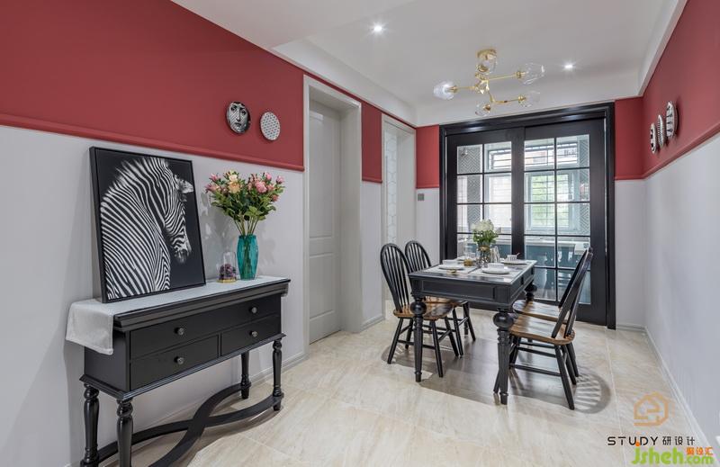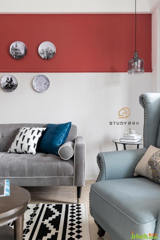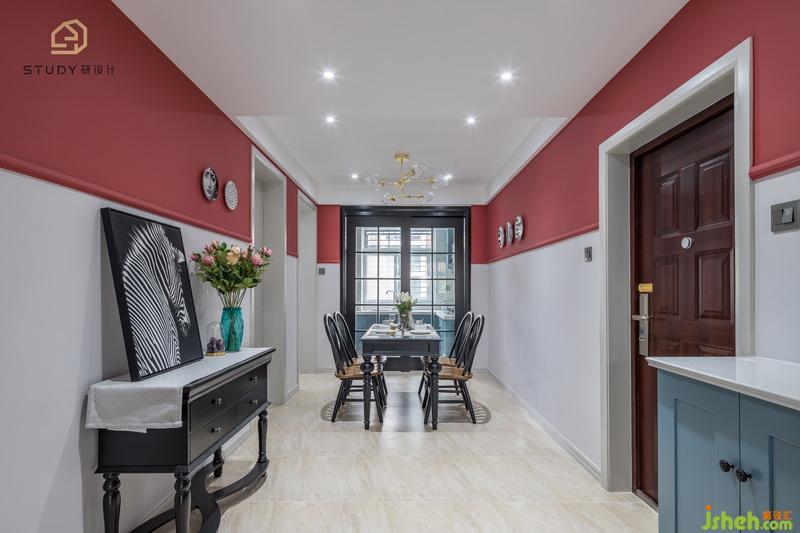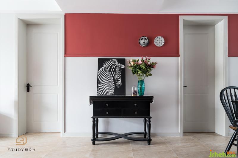 小馬馱著童年的夢,溫暖而遲緩,正像老棉鞋里面,紅色的絨子上曬著太陽 。室內(nèi)設(shè)計師使用紅白色的墻壁搭配,使得客廳具有特色。
