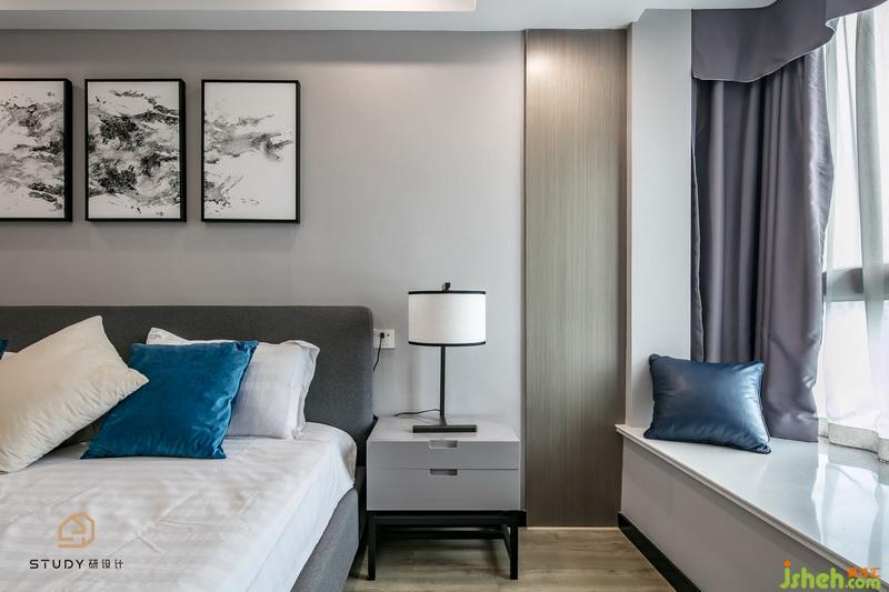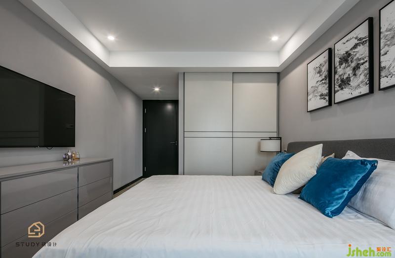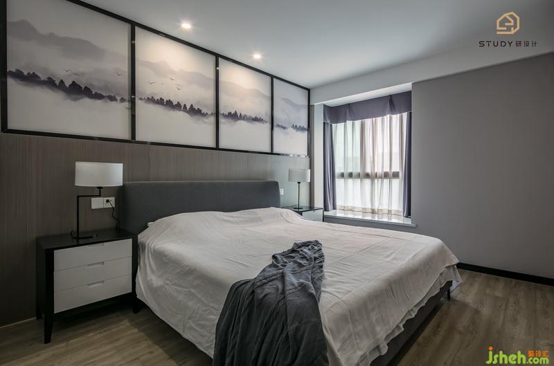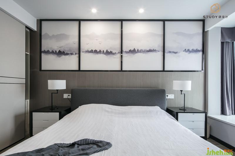 主臥室內(nèi)設(shè)計(jì)師大氣的設(shè)計(jì),背景墻上的畫作,此刻都化作這個(gè)房間里的特色。