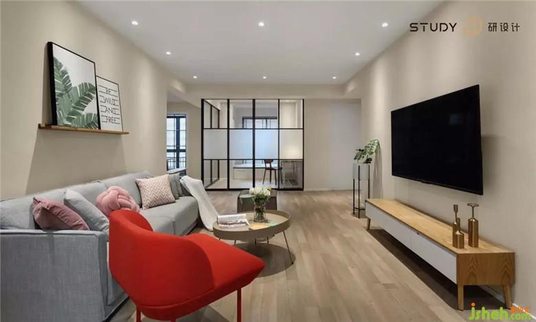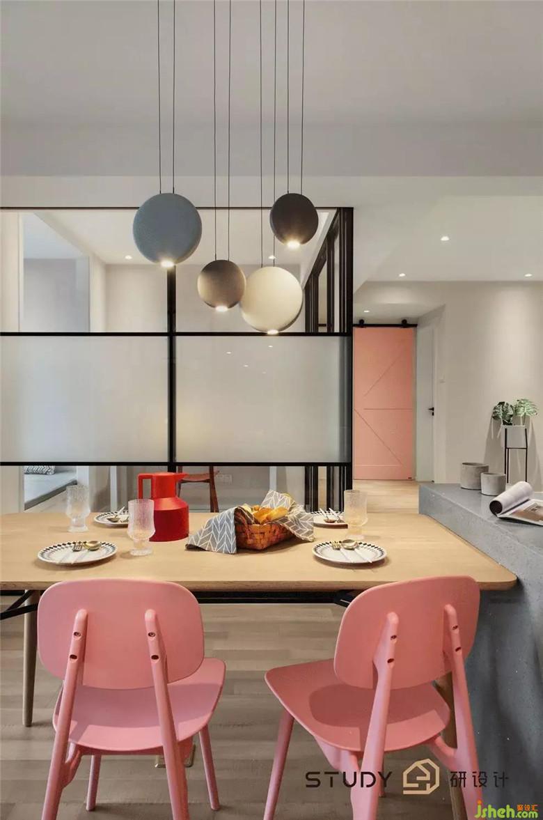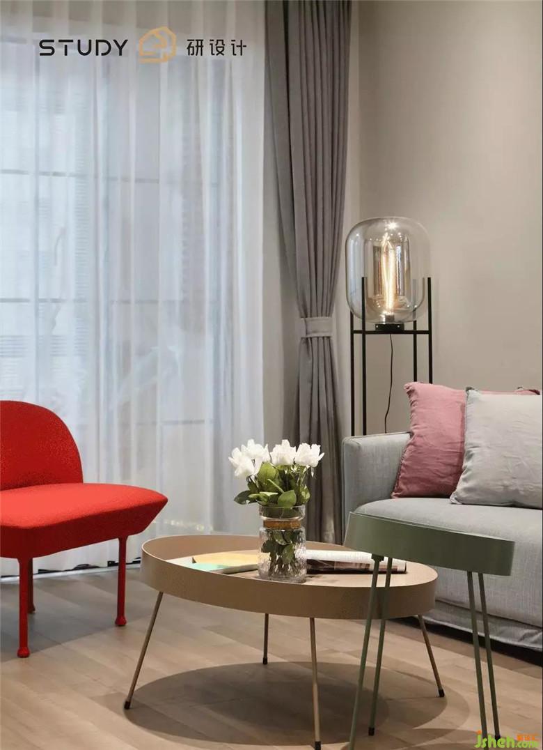 客廳是全家生活的主要場所,來應對動態(tài)的生活及心情。淡色調作為客廳背景,沉穩(wěn)而端莊。但由于業(yè)主喜歡粉紅色,所以室內設計師為她搭配了幾樣粉紅色的家具作為點綴。