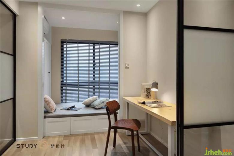 臥室的設計室內設計師保持了冷淡色的基調,黃色臺燈擺件點綴,簡單大方,讓睡眠空間保持相對獨立、安靜而私謐。