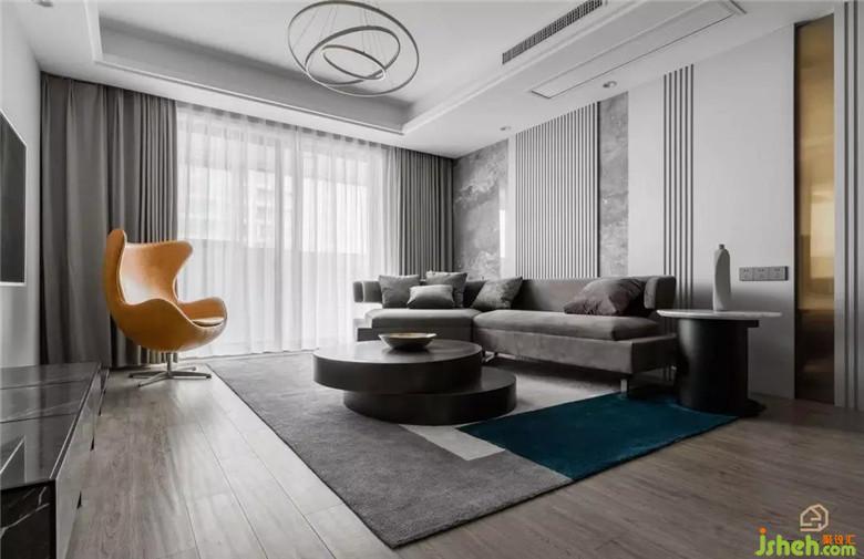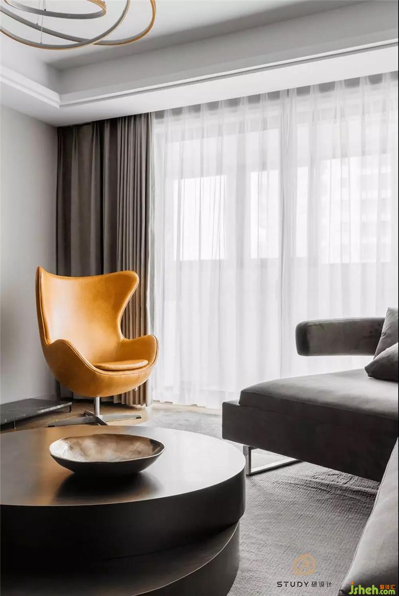在不變動格局的前提下,通過改變原硬裝飾面的色彩與材質(zhì),豐富空間情感,去除頂面繁瑣的線條,讓整個空間干凈利索,使得原本平淡的空間充滿質(zhì)感。硬裝與軟裝完美融合,夢幻灰大理石、灰色烤漆墻板、絨面沙發(fā)、金屬茶幾、黃色蛋殼椅,不同材質(zhì)、飽和度的灰與一抹亮色交替演奏一場層次豐富的交響樂。作品內(nèi)的家具都是由室內(nèi)設(shè)計師設(shè)計定制的,款式可選性更多,自由更改配色及面料,讓整體更加協(xié)調(diào)呼應(yīng)。定制的異形微轉(zhuǎn)角沙發(fā),可以滿足不同坐姿需求,家庭聚會聊天,也可以慵懶的享受屬于自己的愜意與美好。