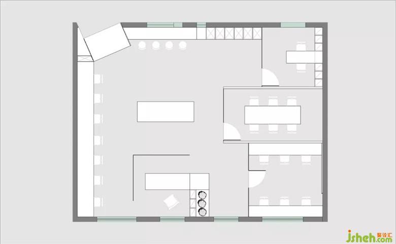 室內(nèi)設(shè)計(jì)師在原始空間中根據(jù)不同的部門放置了各種不同的盒子,然后用玻璃去進(jìn)行分割。從而使開放與獨(dú)立得以共生。