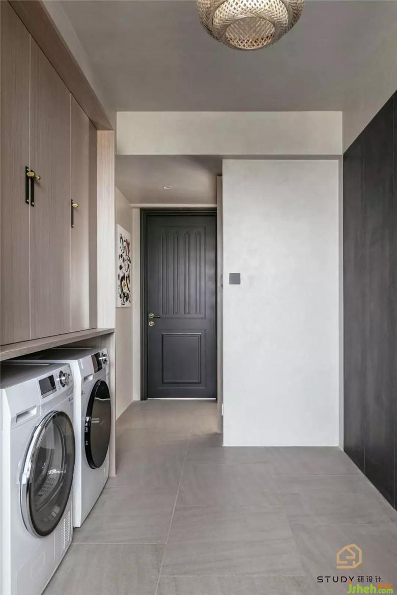 穿過客廳木制門洞,是連接衣帽間、主臥、和衛(wèi)生間的走廊。米黃色馬來漆與砂巖地磚的親密接觸,搭配木色及藤編,訴說著這正是曾經(jīng)經(jīng)歷過的美好生活碎片。臥室房門的造型來源于歐洲某教堂。足夠體量的衣帽間and洗衣房組合,生活不再奔波。