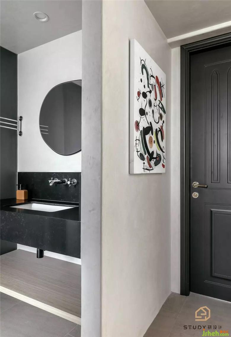 懸空的盥洗臺讓整個空間輕盈起來,墻出龍頭與墻排下水的使用也使得空間更為規(guī)整,干凈利落。