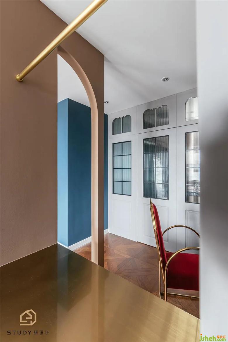 特別定制的衣帽間雙開門,線條圓潤復古,