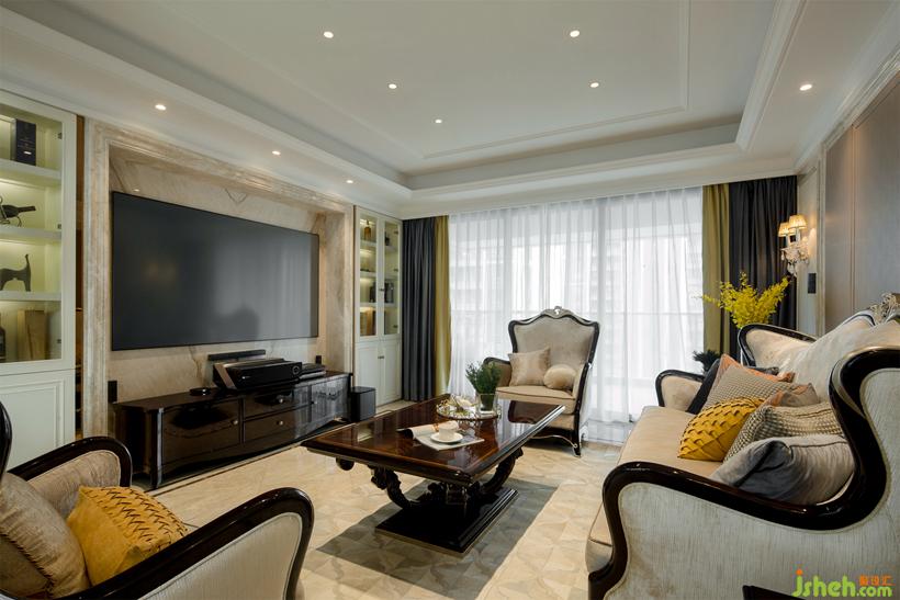 以柜體的設(shè)計概念,打造外觀平整、機能齊全的電視墻,尤其對稱的展示柜,用來放置旅游各國的紀念品,成為凝聚家庭情感的回憶墻。