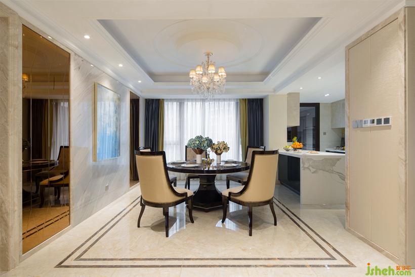遵循古典對稱美學(xué),運用茶灰鏡和白金砂大理石主墻,創(chuàng)造出餐廳焦點,使之融入新古典風(fēng)格中。