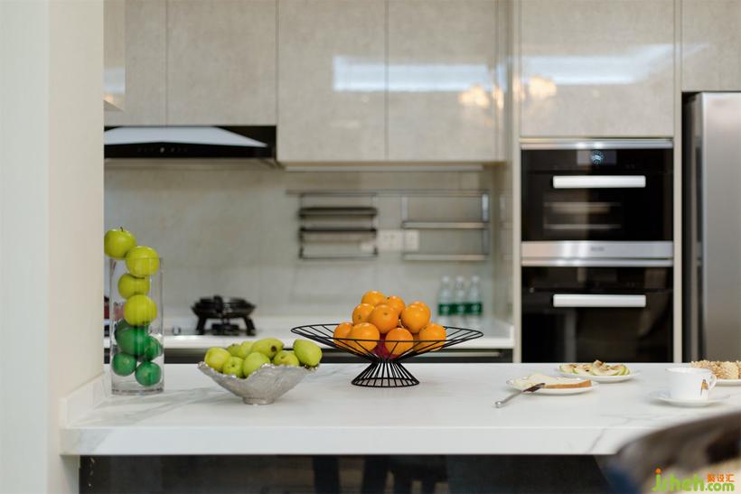 島臺上餐點果盤,勾勒出美好生活的期盼,想必日后一家人的很多美好時光都會在這里見證。