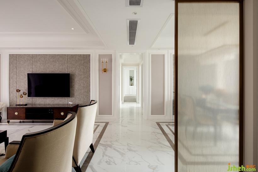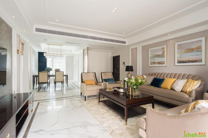 一片片純凈的客廳中,點綴些許金色,淡淡的帶出符合屋主氣質(zhì)的優(yōu)雅華麗。透過干凈的空間背景,襯上符合屋主性格的軟飾,呈現(xiàn)專屬于屋主個性的獨特美式居家。有刻意使用主燈的客廳,就不會有壓迫感,設(shè)計公司
