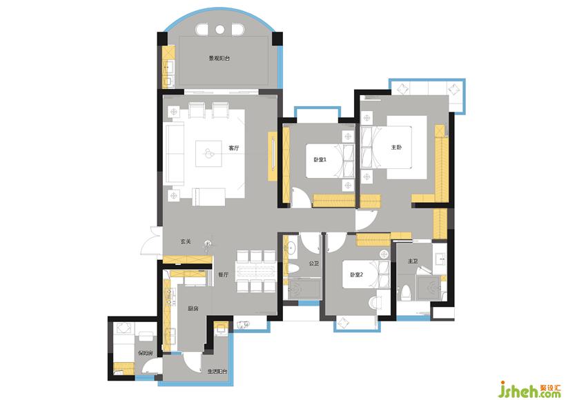 通過調(diào)整隔間,完善并營造良好餐廳區(qū)域。通過設(shè)計給予完善的衣帽間,提升屋主的生活品味。設(shè)計公司