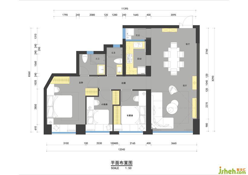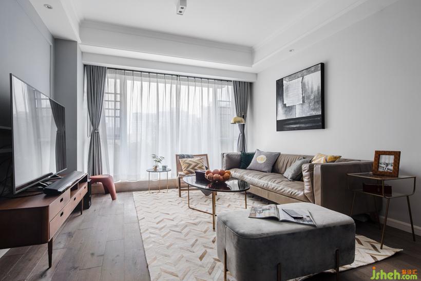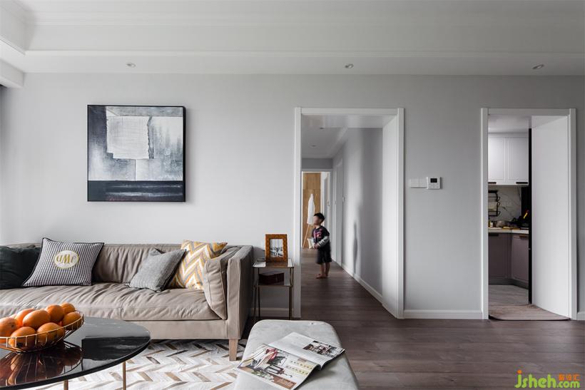 以兩種灰色調(diào)作為空間基底。電視主墻的中灰,鋪陳轉(zhuǎn)折沙發(fā)背景墻的淺灰。設(shè)計(jì)公司
