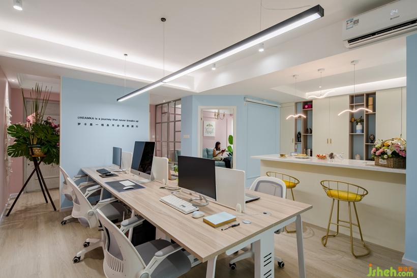 入戶短墻雙動(dòng)線,員工上班可以徑直落座。