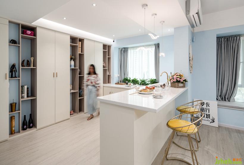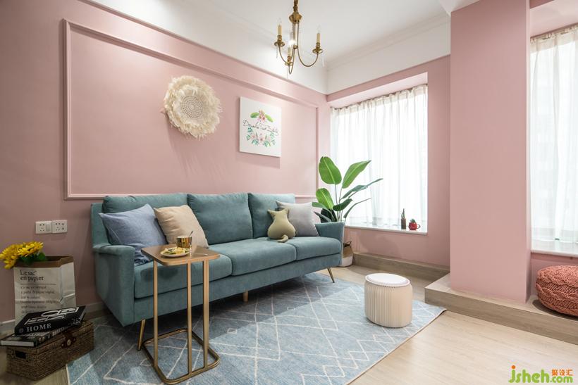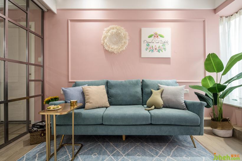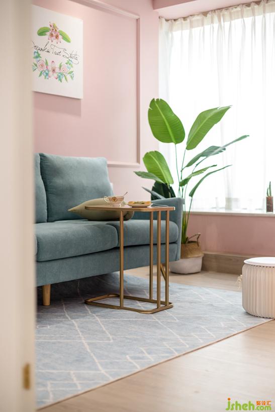由于前業(yè)主改動(dòng)衛(wèi)生間的位置,只能通過走明管來解決。地面抬高區(qū)為管道位,買沙發(fā)的時(shí)候特意選購(gòu)沙發(fā)椅背傾斜的造型,能夠完美的貼合墻壁。柱子旁正好留出空位放一個(gè)矮墩。