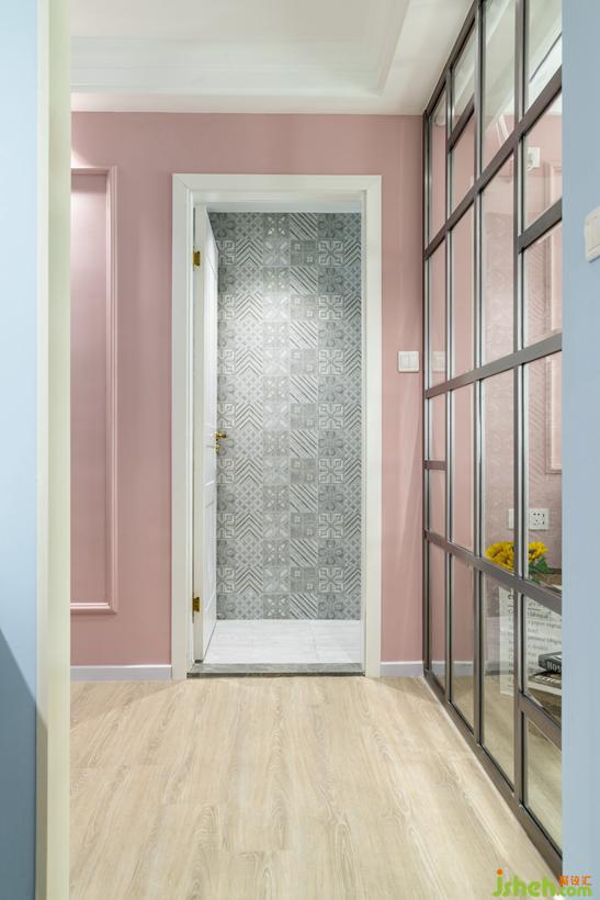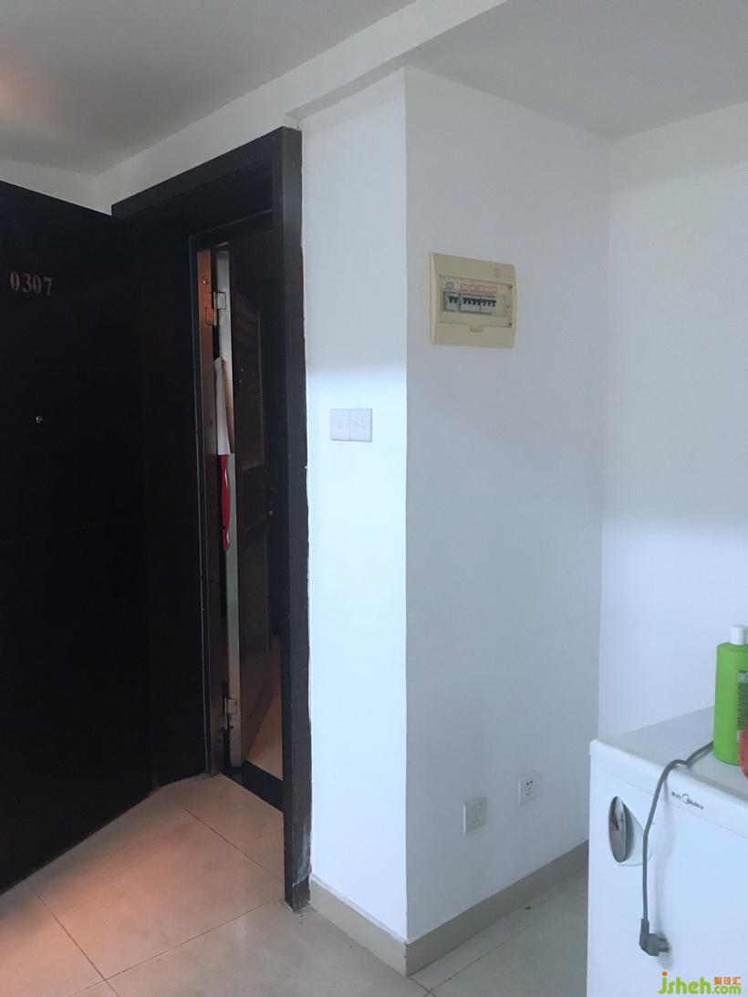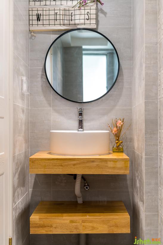 將墻面封平,自然留出下圖洗手臺(tái)位置,由于電箱過于靠近鏡子,通過收納袋做遮擋,也能放置小件物品。