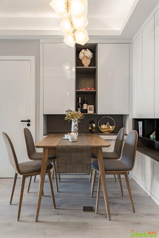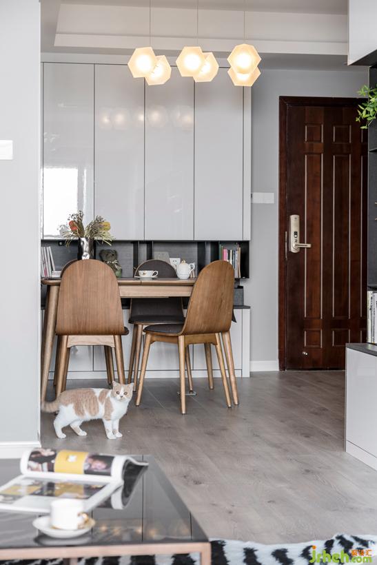 小戶型福星,從次臥空間爭(zhēng)取出餐邊柜,柜體凹洞平齊餐桌,作為餐桌的延伸。桌旗由Sandy日本背回。