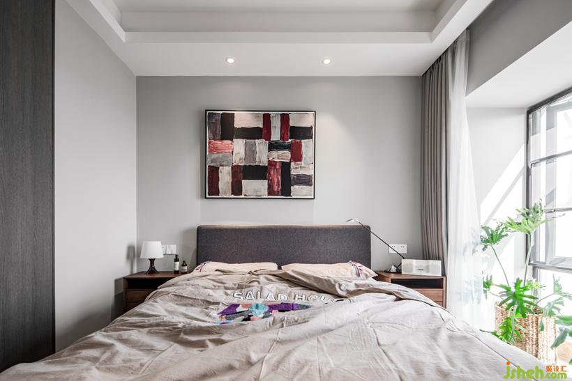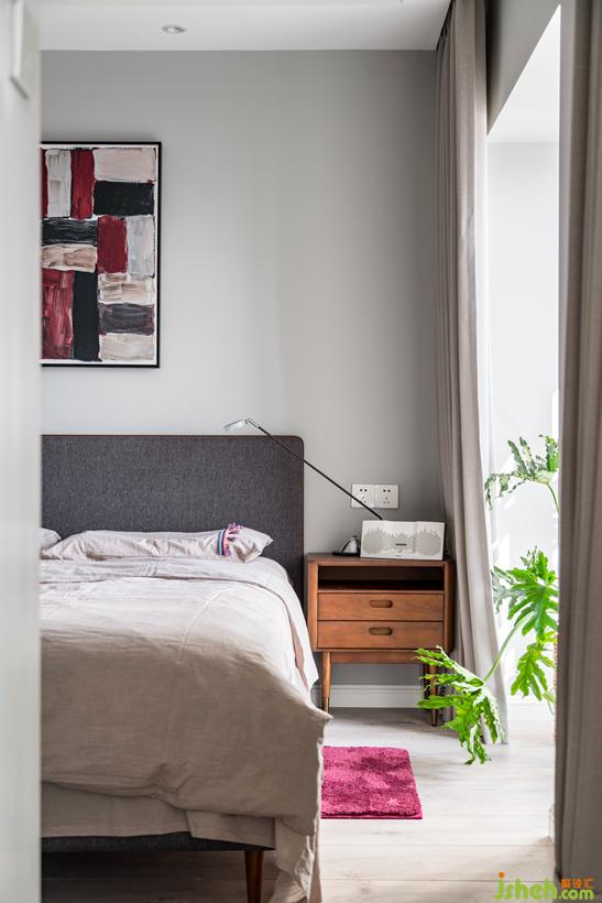 主臥進(jìn)門(mén),綠植從窗臺(tái)歪出頭向你招手。