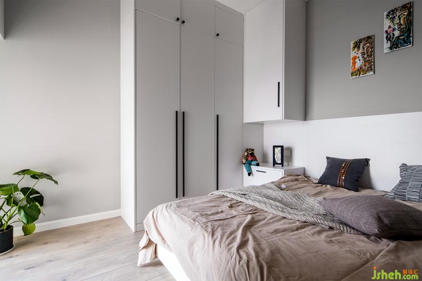 榻榻米與柜體整體定制,在小房間內(nèi)完成強(qiáng)大的收納。柜體做空,自然形成床頭柜。