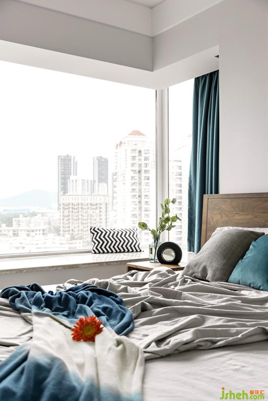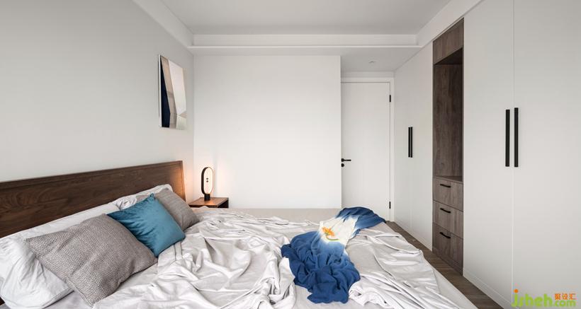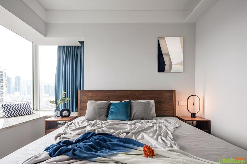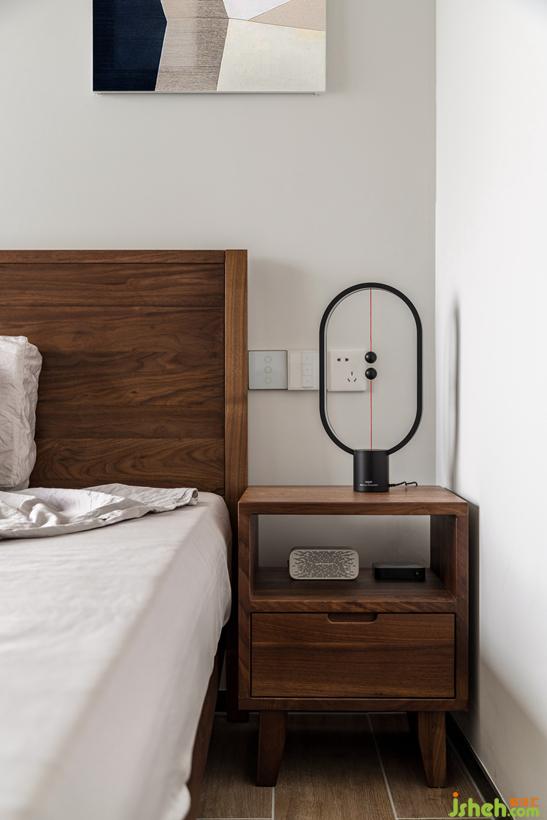 床頭墻面積窄,用不對稱的掛畫,平衡視覺感。木質(zhì)家具注入休閑與暖意,搭配出自然的觸感。