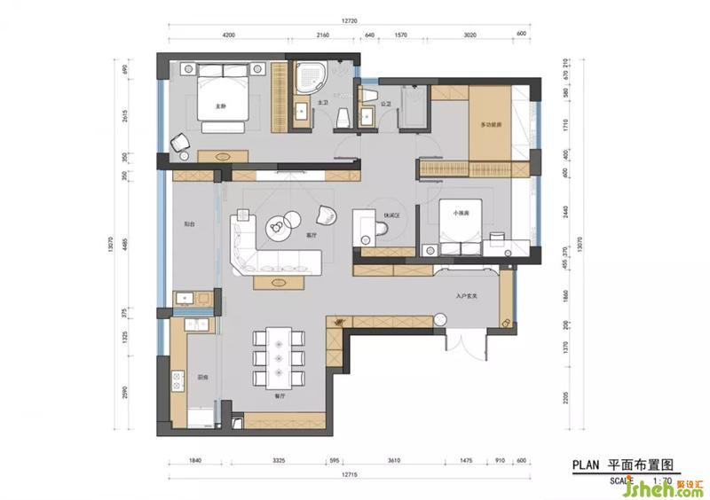 1:問題:客餐廳采用豎向布局,家具在平面上安置后,過道卻太窄。