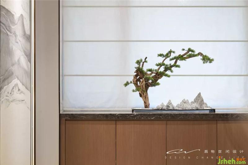 上方端景引進(jìn)恰好的禪意,兼具臨時(shí)物品的擺放。