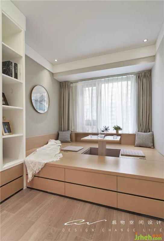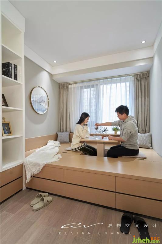 多功能房做榻榻米形式,矮柜與木擋板形成圍合感,閑時的品茶雅地,也是親友留宿的安心居所。裝修設計
