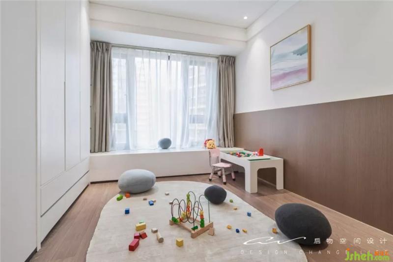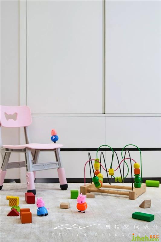 小朋友目前還小,房間作為游戲室使用,留有插座開關等硬裝基礎。后期安排上家具,又能恢復成正常房間使用。裝修設計