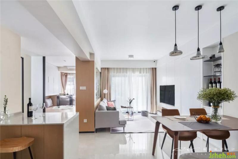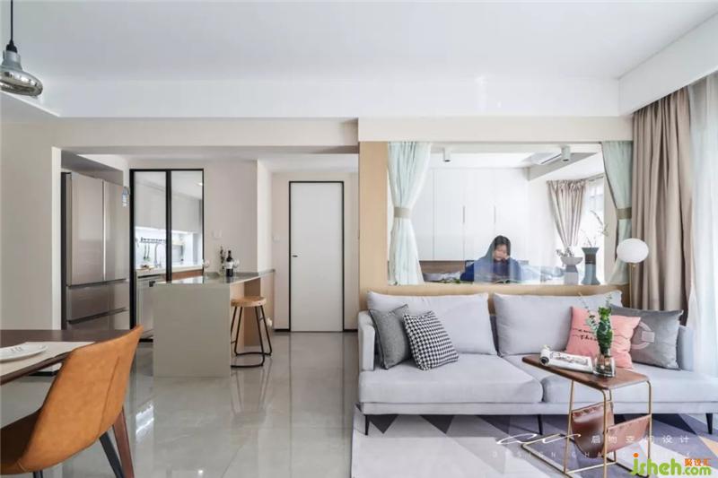 實際套內(nèi)面積僅55平,但想做到100平的平效?書房通透+輕食區(qū)外置+客餐廳,成果肉眼可見。 裝修設(shè)計