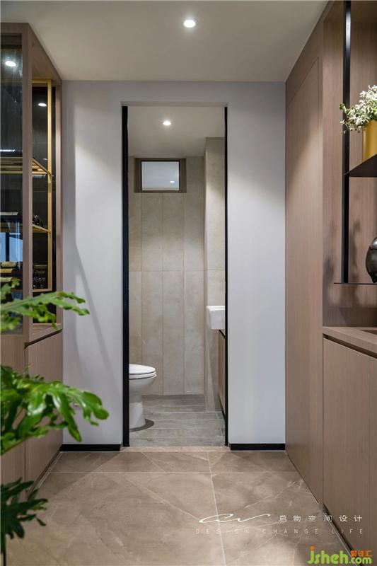 公衛(wèi)尺寸緊湊,面盆用半嵌入式緩解臺(tái)面緊張問題。推拉門也很好的節(jié)約了空間。裝修設(shè)計(jì)