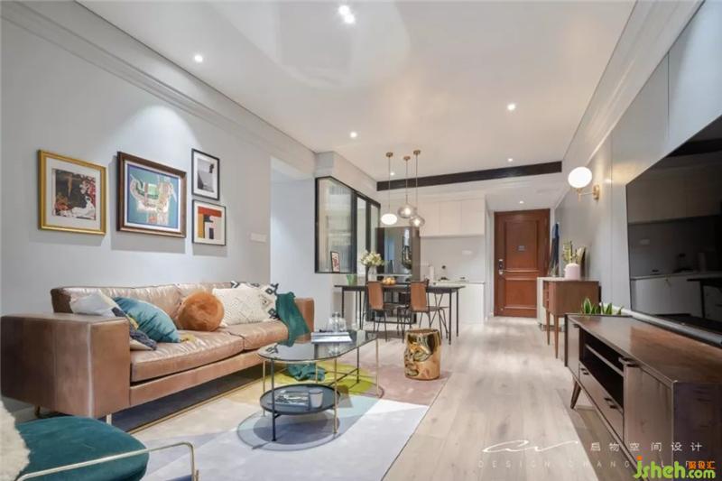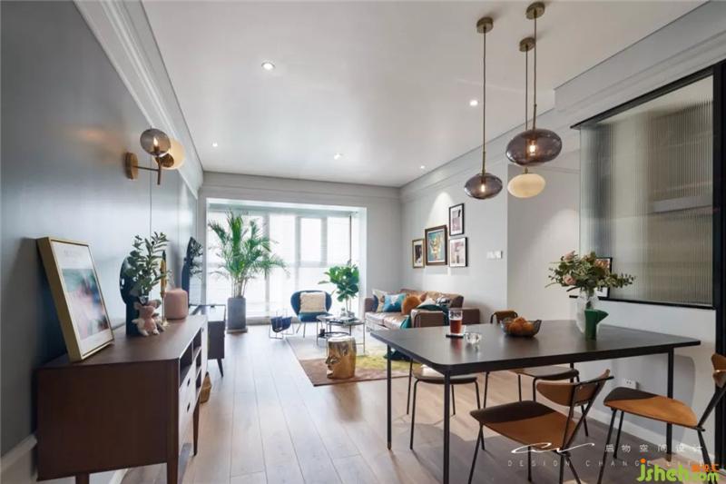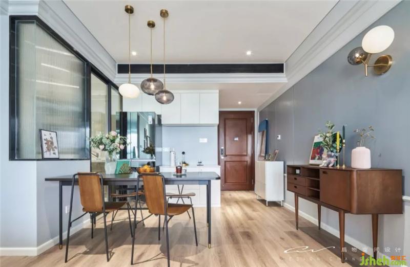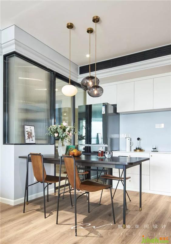 廚房用長虹玻璃和推拉門的組合,讓餐廳通透的同時(shí),也隔絕油煙。