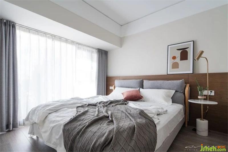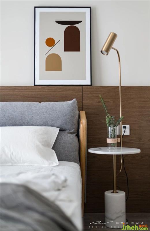 床背木工師傅制作,依稀感到木皮的肌理。選擇親膚的床品,借助睡眠到達第二天清晨。裝修設計