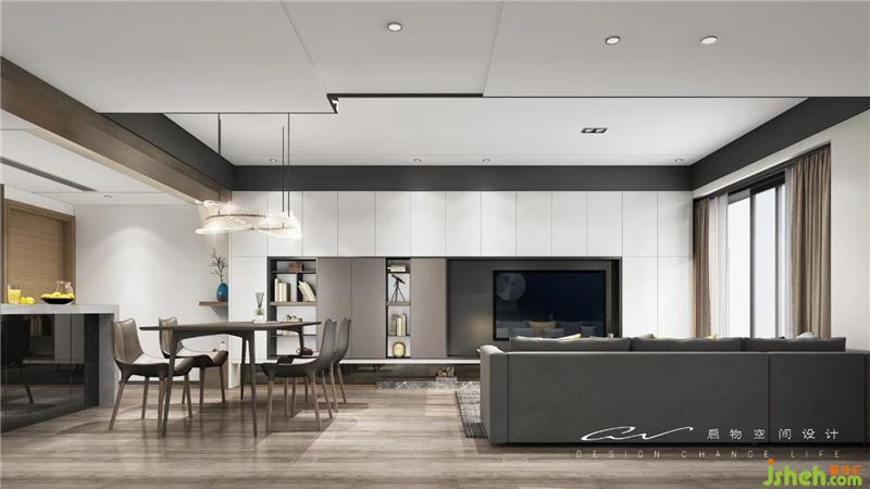 效果圖對(duì)比,置物|端景|功能 柜體3個(gè)開放格對(duì)應(yīng),餐廳|過道|客廳