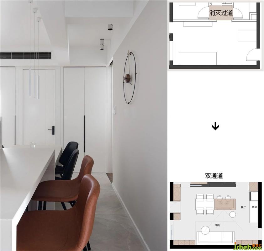 EN~亮點!68m2的房子也有雙通道的布局,在家也能少走彎路,此舉消滅了舊房的過道。裝修設計