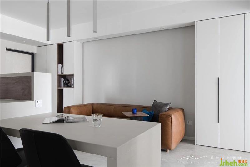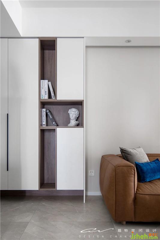 不用刻意做造型,對稱的柜子形塑空間。左邊是鞋柜、中間沙發(fā),右邊給客廳用,剛剛好!