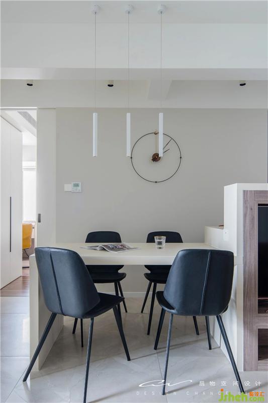 極簡(jiǎn)餐廳燈,掛鐘很低調(diào)。裝修設(shè)計(jì)