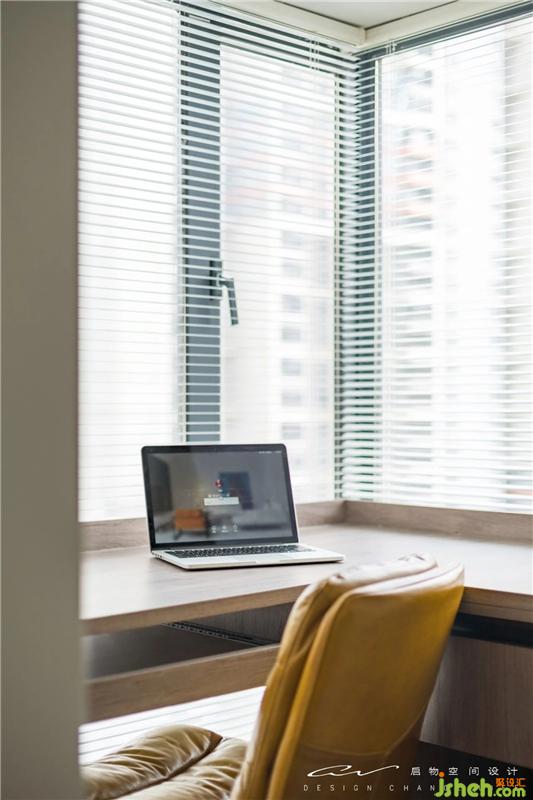 預(yù)備的兒童房:轉(zhuǎn)角書桌,用百葉調(diào)節(jié)光線。裝修設(shè)計