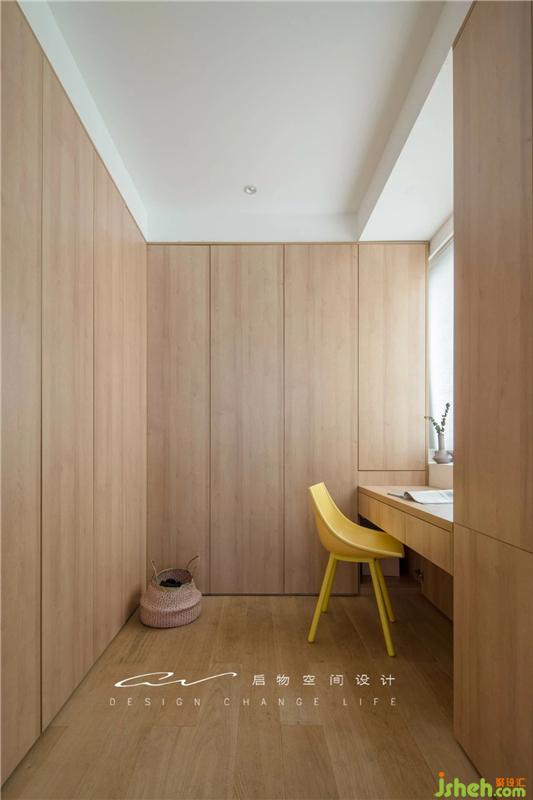 衣帽間柜門到頂。顏色接近于地板。裝修設計