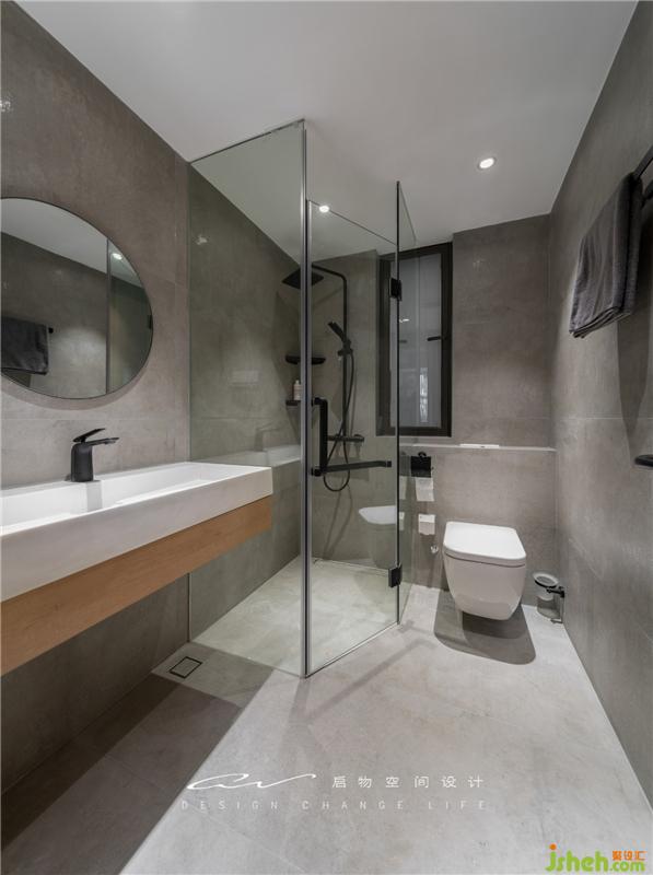 在視覺上的簡潔啟物做了以下努力。淋浴房直接做了高度落差,也在預算上省下大理石擋水條及底板費用。裝修設計