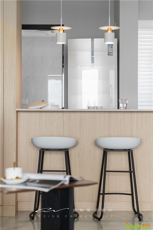 Tip:吧臺臺面與鞋柜平齊,底柜縮進300mm,拯救無處安放的腿,這樣的吧臺才能久坐哦!