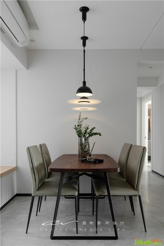 餐廳整潔大大歸功于,啟物研究出《空調(diào)管線隱藏寶典》。掛壁式空調(diào)暗藏在吊頂下,與墻面融為一體美觀又大方。即使是白墻,通過極簡家具與個性吊燈的搭配,加上幾支碧綠的尤加利的點綴,也讓這個餐廳不簡單!