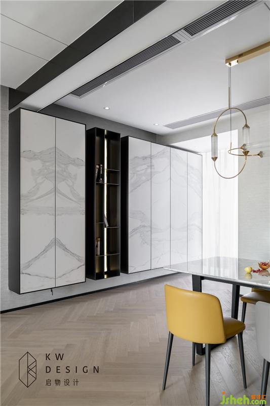 餐邊柜外定,這又是牛頓疑惑之地。懸浮柜子+不銹鋼柜板+石材柜門(mén)+燈光與反彈器。聽(tīng)起來(lái)就重量十足的材質(zhì),用云淡風(fēng)輕的方式懸浮起來(lái)。裝修設(shè)計(jì)