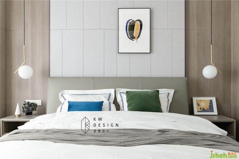 主臥用對(duì)稱的手法表達(dá)秩序感。設(shè)計(jì)細(xì)節(jié)在硬包縫與木飾面接縫的齊整。