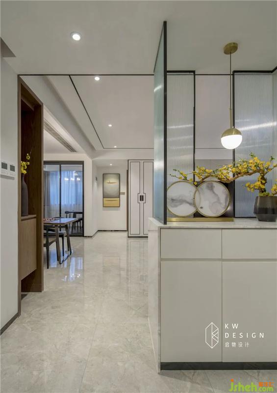 白色夾雜灰色紋理的大理石延續(xù)著整個空間的素雅和端莊,以溫和、包容的方式,帶來最大化的干凈和利落。室內(nèi)設(shè)計師