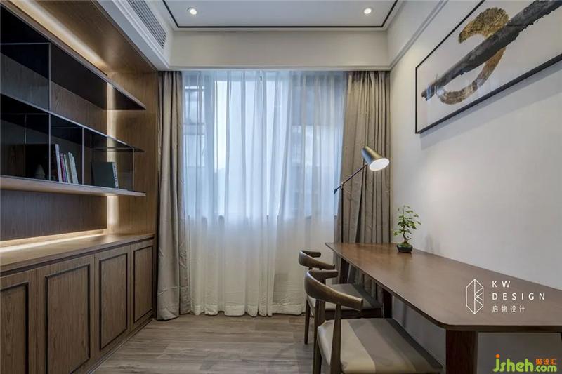 說到書房,在腦海浮現(xiàn)的第一印象是神圣和莊重感,所以選擇富有沉穩(wěn)和歷史感的胡桃木做了整體的裝飾。