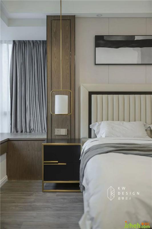 窗外投射進(jìn)來(lái)的陽(yáng)光沐浴著帶有生活本質(zhì)的墻布和沉積著厚重歷史感的深灰色的木地板,奶茶色的硬包,在做工精湛,充盈生命力度的線(xiàn)條下,訴說(shuō)著對(duì)嶄新生活的期待,對(duì)未來(lái)的無(wú)限向往。
