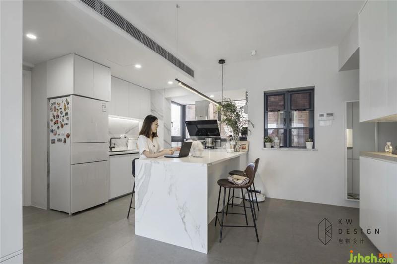 ?開放式廚房與島臺的結(jié)合,使整個公共空間變得開闊明朗。單空間里滿足烹飪,儲物,用餐,休閑,閱讀,會客等多功能需求。促進情感交流,親子互動。增強人與人的粘性,讓空間結(jié)構(gòu)不僅僅流于形式。