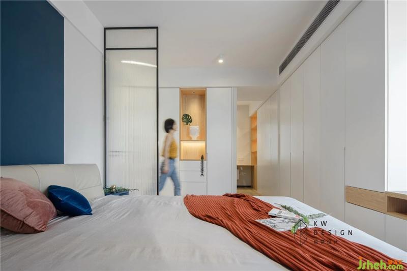 主臥由衣柜延伸過來隱秘的空間,是女主人的專屬天地。壁掛式新風(fēng)機為主人和貓咪提供自然清新的空氣。室內(nèi)設(shè)計師
