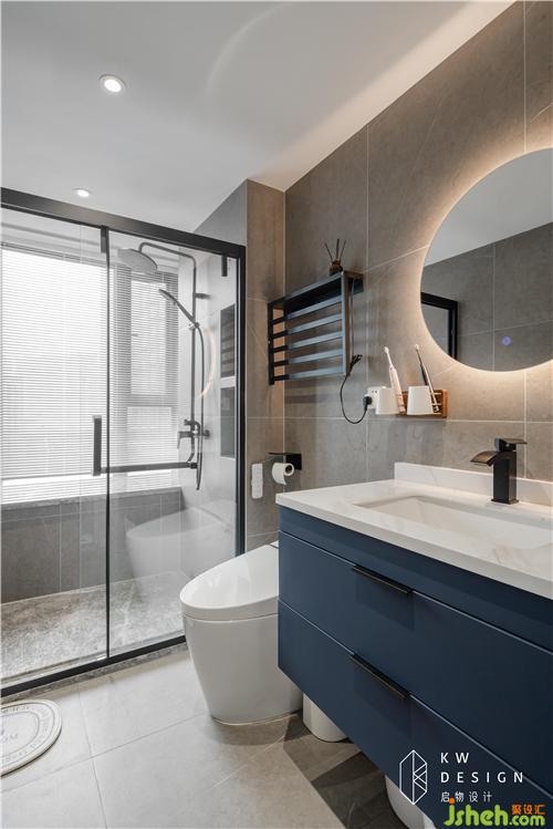 圓形防霧鏡溫和大氣,衛(wèi)生間灰色調(diào)為主,洗手臺(tái)就可以自主選擇自己喜歡的顏色,為空間增添一抹亮色。